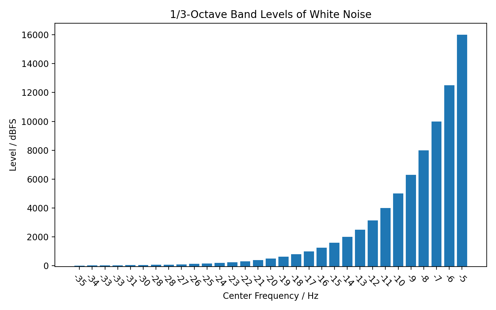fc, levels = noise.stats.octave_band_levels(oct_fraction=3)